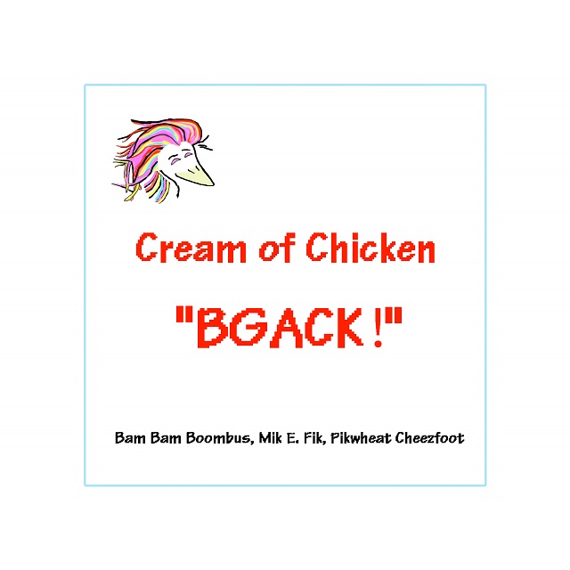 Guest Stars: Andy West and Paul Zahl Live 75 To the gods... The General Piece of Cake Nuts to You Hell No Epic I Will Be Your Cupcake If You'll Be My Wagga Baby Uh Huh CREAM OF CHICKEN Pikwheat Cheezfoot Mik E. Fik Bam Bam Boombus Cream of Chicken was formed, and these songs were conceived and honed, in High School, in 1971, when we were 16. We reformed briefly in 1974. |
